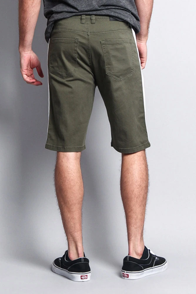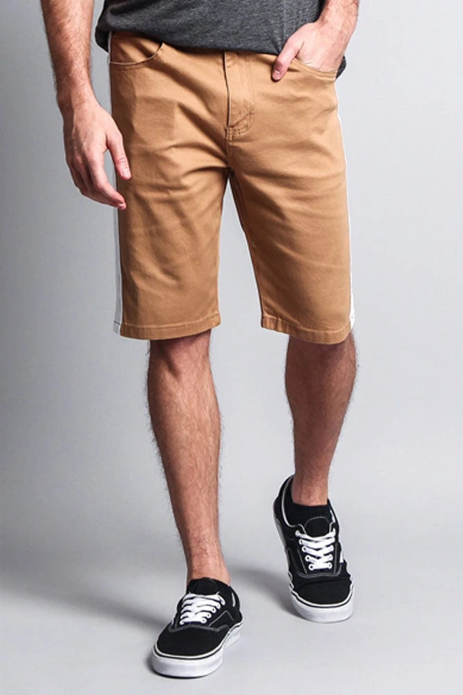 Stay in style with our jean shorts featuring a trendy accent band on each side.Â